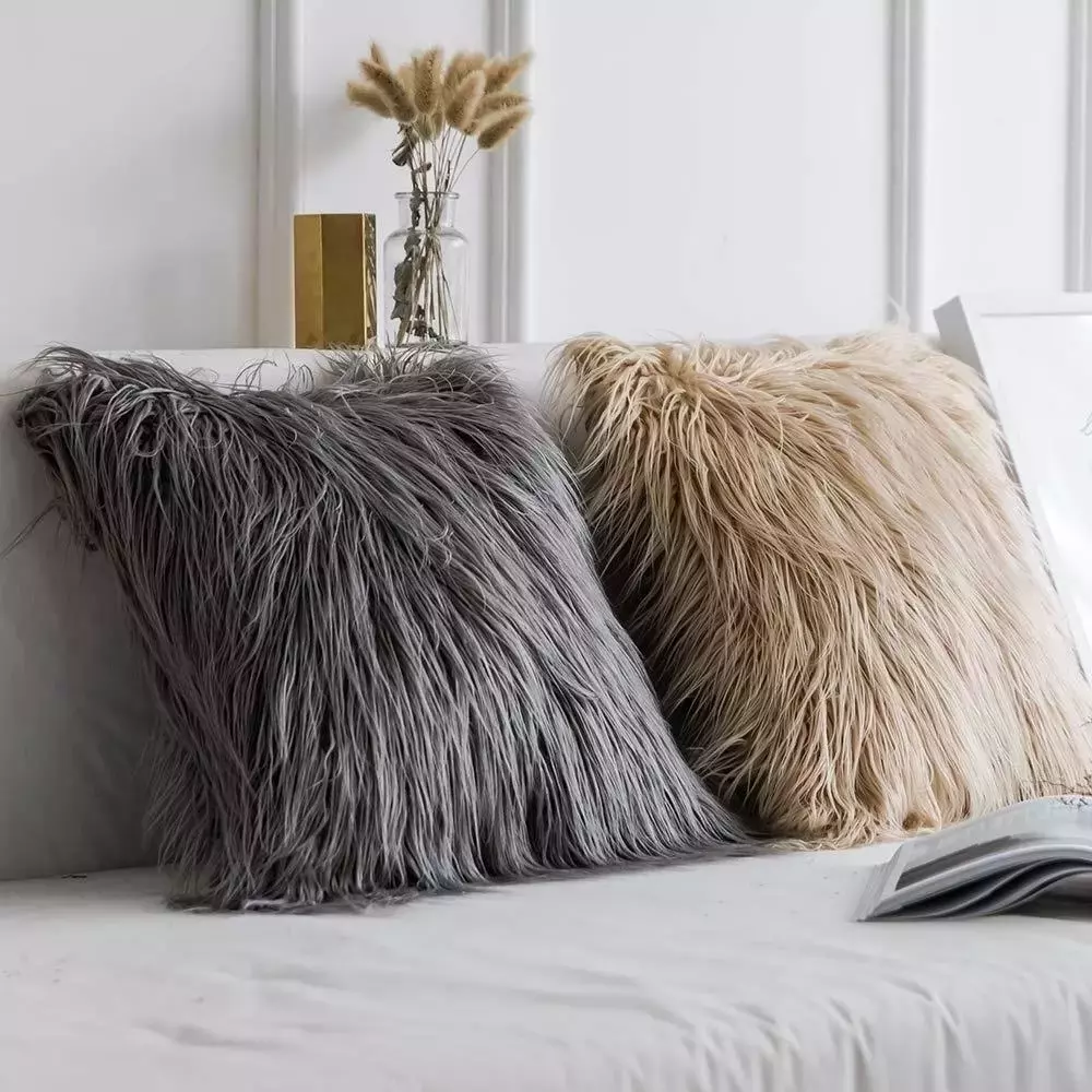 Descripción: Set que incluye funda de almohadón de pelo largo, súper suave al tacto, + relleno 50×50 cm, listo para usar.
